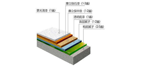 8、涂防水漆透明面漆:無(wú)需稀釋,刷涂或噴刷,涂一到兩遍,用量0.15-0.2kg/平方米。