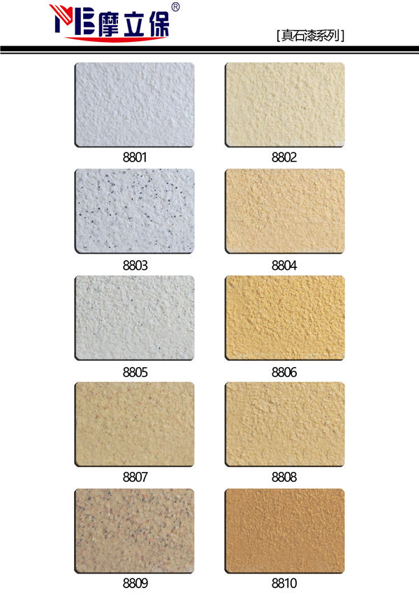 摩立保真石漆以高耐候有機(jī)硅改性丙烯酸乳液和天然彩砂為主要原料精制而成,具有天然真實(shí)的自然色澤,給人以高雅、和諧、莊重之美感。適合于各類建筑物的室內(nèi)外裝,特別是在曲面建筑物上裝飾,可以做到生動(dòng)逼真,回歸自然的功效。